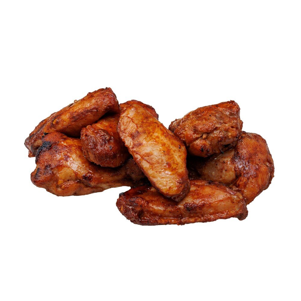 Состав: крылья куриные, соус барбекю, мед, соевый соус, апельсиновый сок, соус шрирача, специи.