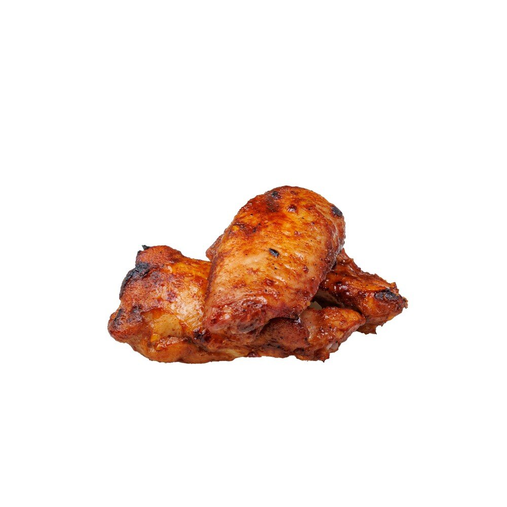 Состав: крылья куриные, соус барбекю, мед, соевый соус, апельсиновый сок, соус шрирача, специи.