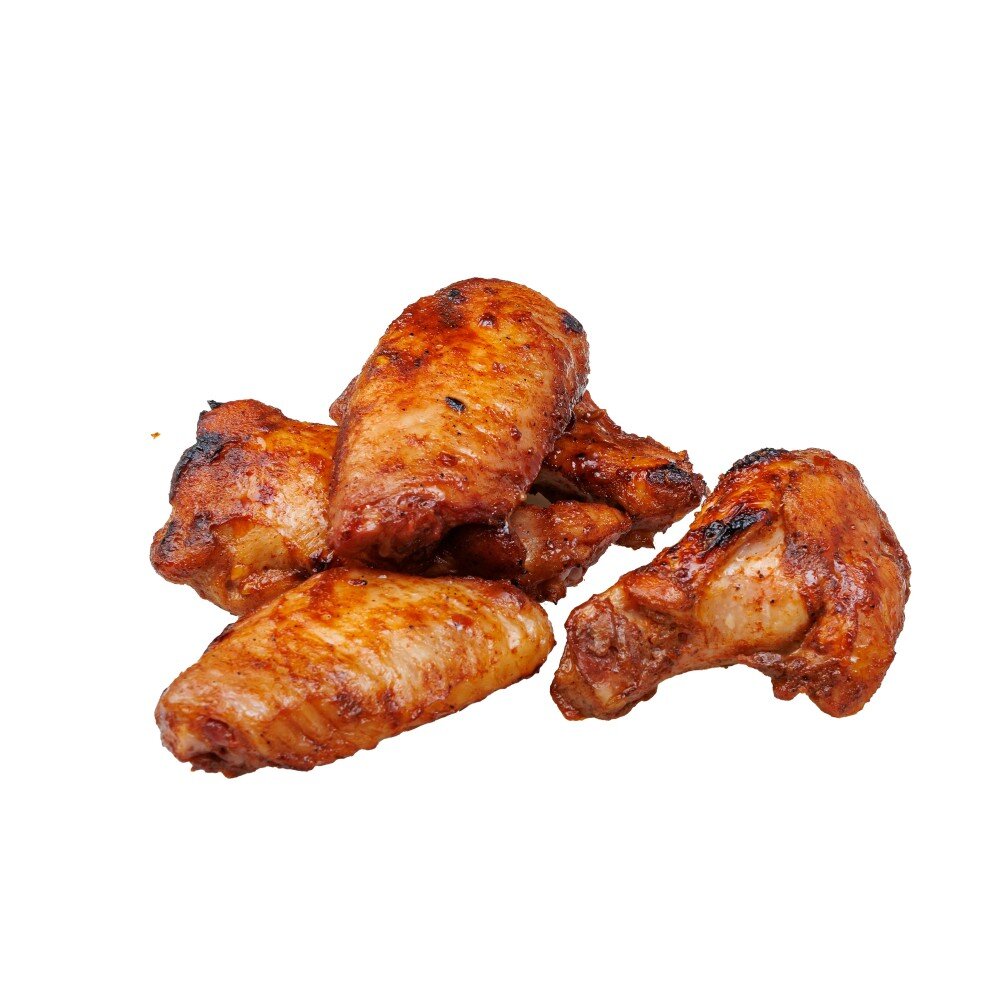 Состав: крылья куриные, соус барбекю, мед, соевый соус, апельсиновый сок, соус шрирача, специи.